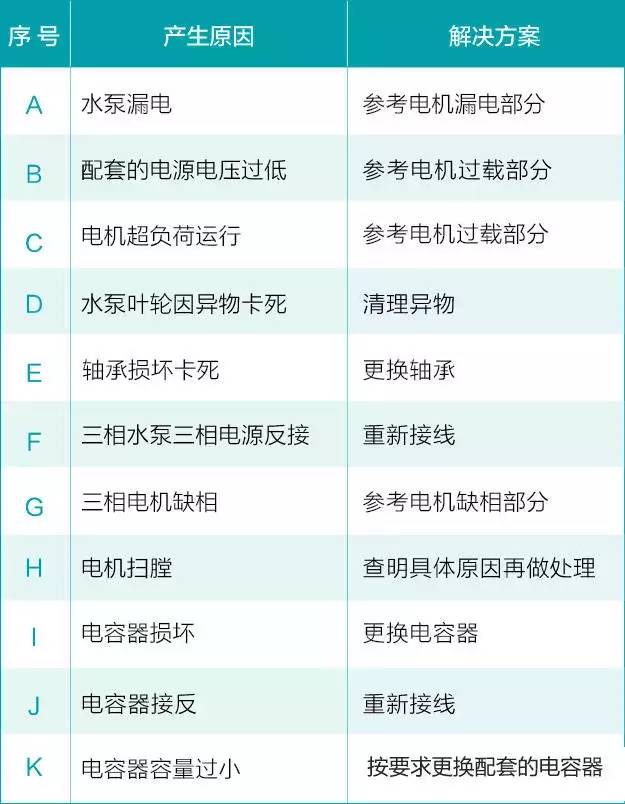 这些是造成水泵“病症”的常见原因,并不是所有原因,实践中处理故障,还因根据具体问题,实际分析,应遵从先外后里的原则,切勿盲目操作。